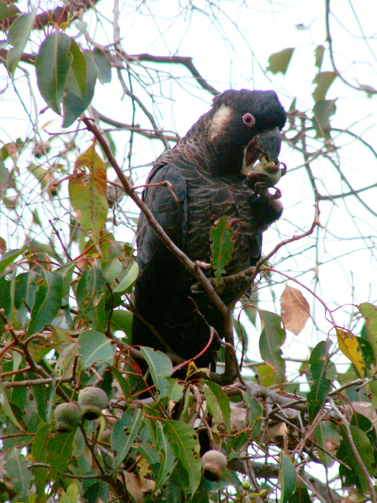 Baudin's black cockatoo (Zanda baudinii), also known as Baudin's cockatoo or the long-billed black cockatoo, is a species of genus Zanda found in southwest Australia. The epithet commemorates the French explorer Nicolas Baudin. It has a short crest on the top of its head, and the plumage is mostly greyish black. It has prominent white cheek patches and a white tail band. The body feathers are edged with white giving a scalloped appearance. Adult males have a dark grey beak and pink eye-rings. Adult females have a bone coloured beak, grey eye-rings and ear patches that are paler than those of the males.