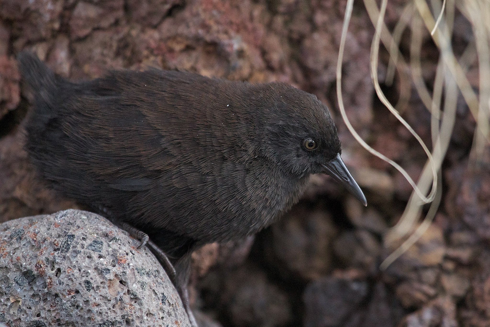 The Inaccessible Island rail has brown plumage, black bill and feet, and adults have a red eye. It occupies most habitats on Inaccessible Island, from the beaches to the central plateau, feeding on a variety of small invertebrates and also some plant matter. Pairs are territorial and monogamous, with both parents being responsible for incubating the eggs and raising the chicks. Its adaptations to living on a tiny island at high densities include low base metabolic rates, small clutch sizes, and flightlessness.