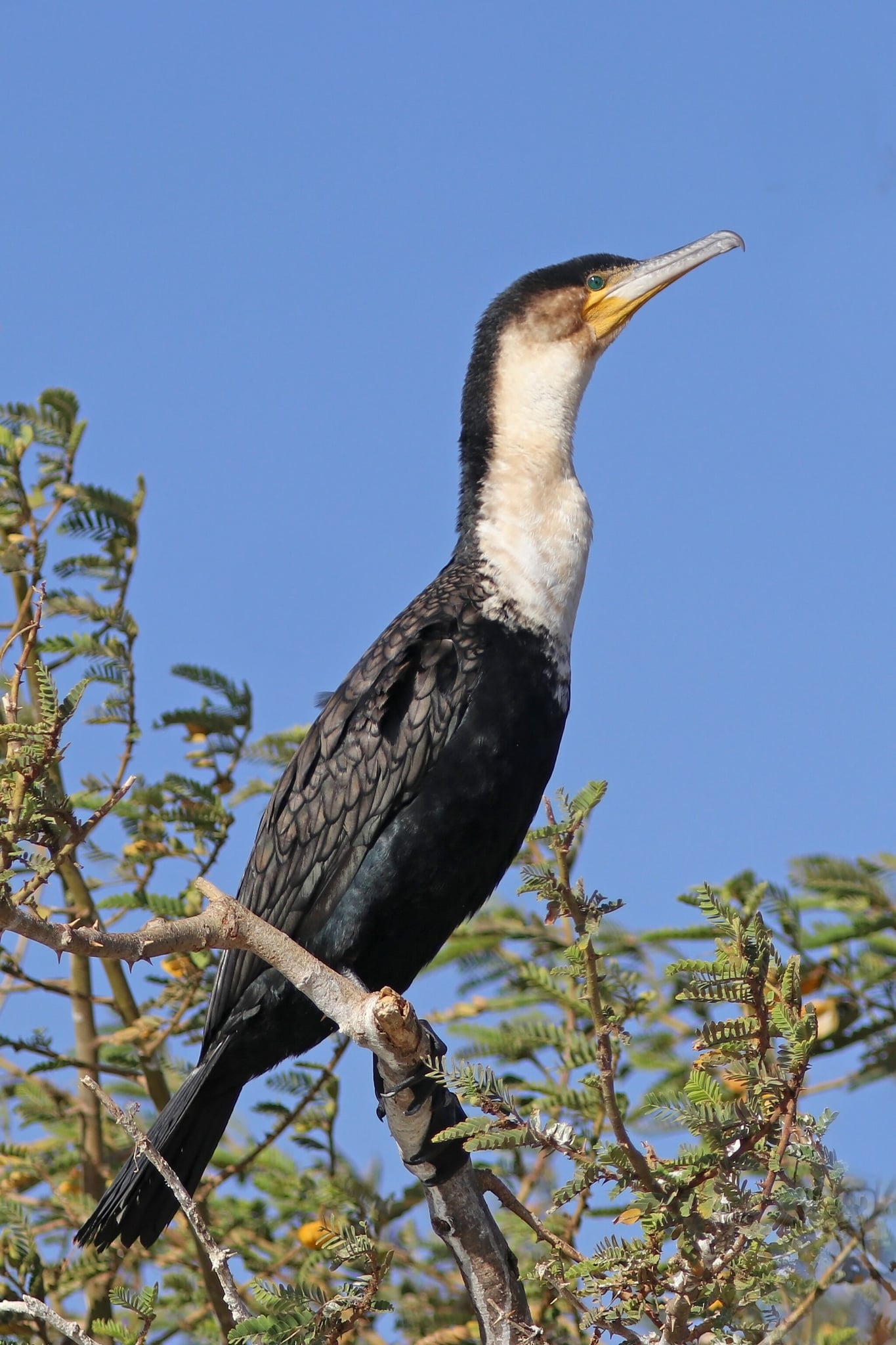 The white-breasted cormorant (Phalacrocorax carbo lucidus) is a subspecies of the widely distributed great cormorant, formerly often considered to be a separate species. Its distinguishing features include a white breast and a preference for freshwater habitats among its subpopulations. The species should not be confused with the smaller and morphologically distinct endemic South Australian black-faced cormorant, which occasionally shares the common name "white-breasted cormorant".
