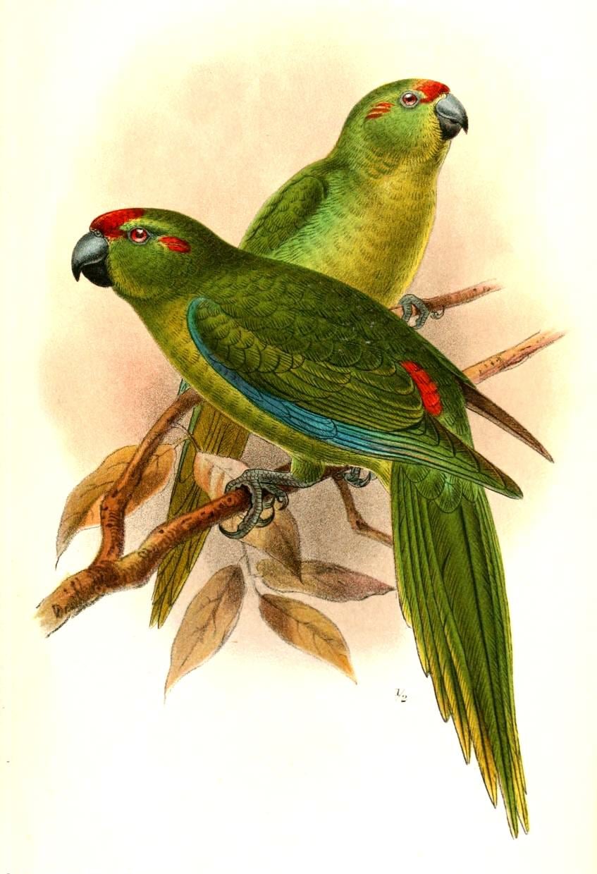 Cyanoramphus subflavescens, Lord Howe red-fronted parakeet, Lord Howe Island parakeet