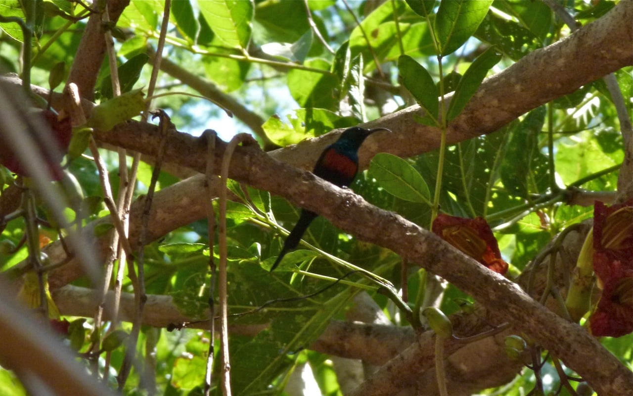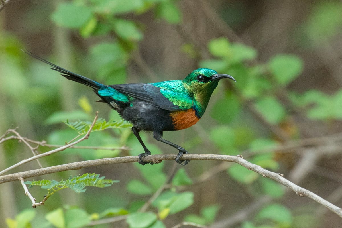 The black-bellied sunbird (Cinnyris nectarinioides) is a small sunbird located primarily in Africa. Two subspecies are recognized: the Cinnyris nectarinioides erlangeri, which is smaller and found in Ethiopia, Somalia, and Kenya; and the Cinnyris nectarinioides nectarinioides, which is larger and found in Kenya and Tanzania. This bird inhabits savannah, wetlands, and terrestrial freshwater areas.